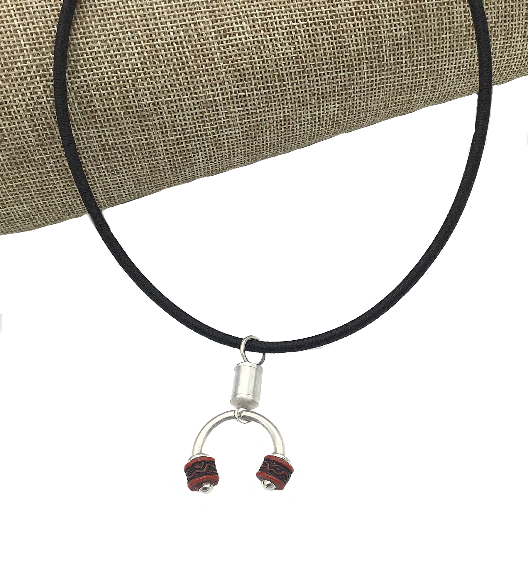 Composition: silver sterling., leather cord. red beads